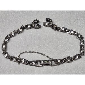 Vintage Sterling Silver Simulated Diamond Tennis Bracelet 6" Needs Repair