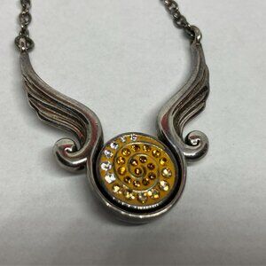 Vintage Sterling Silver Snap Rhinestone Pendant Wings Necklace Sz 19". Preowned, as you see it
