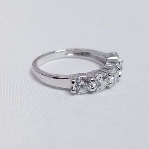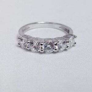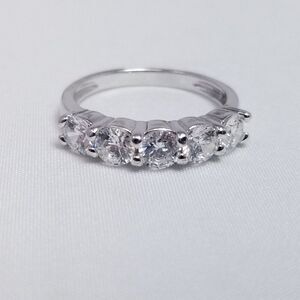 Vintage Sterling Silver Sparkly CZ Five Stone Stacking Band Ring, Size 6, Estate