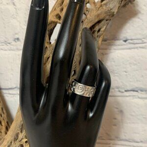 FEATURES: Silver ring with the images of Spiral Suns & Flowers / Marked: 925 / see photos for more details