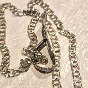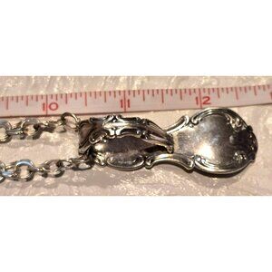 Vintage Sterling Silver Spoon Handle Pendant Necklace Double Curb Chain HS106
