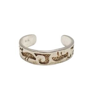 Vintage Sterling Silver Stamped Design Toe Ring, Animals, Retro Estate
