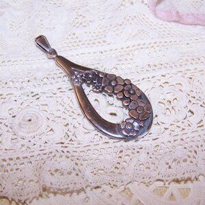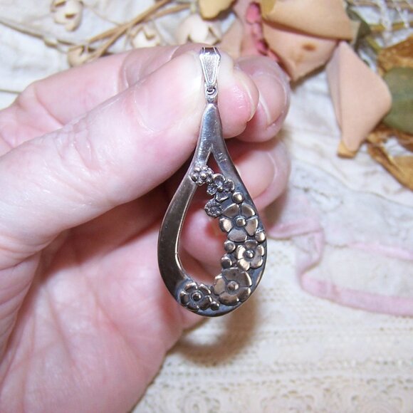 Vintage Sterling Silver Teardrop Pendant with Florals
