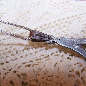 In a design that I think looks like Danish Modern, may I offer this Sterling Silver (hallmarked 925 Silver on the back of the bale) pendant. In a teardrop shape with an open area, the top of the piece is adorned with lots of flowers. From top of bale to bottom measures 2"; width is 7/8". Weight is 6.4 grams. Condition is very nice with a dark patina to the silver - a bit more of a polish will yield a high shine. All that's needed now is the right chain - mine is for display purposes only.