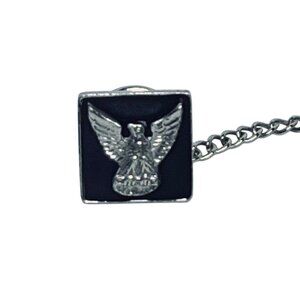 Crafted from sterling silver, this vintage tie tack features a detailed eagle design. A secure chain and bar provide reliable fastening for formal wear.