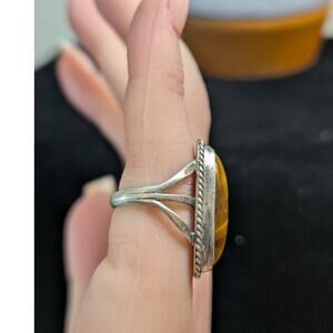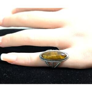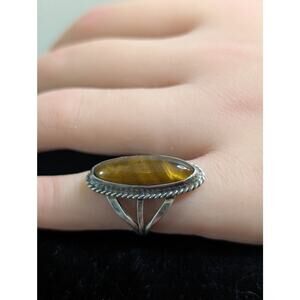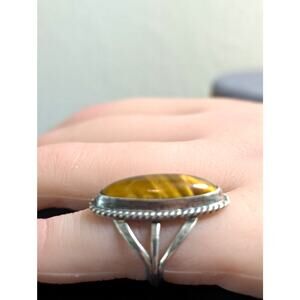 Vintage Sterling Silver Tiger's Eye Long Oval Native American Ring Size 4. Pre-owned, this ring is in excellent vintage condition. Measures between a 4 and 4.25.