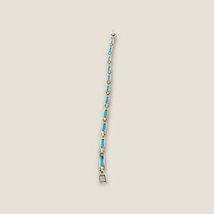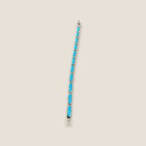 This vintage bracelet combines the elegance of sterling silver with the striking hue of turquoise stones, creating an accessory that effortlessly enhances any ensemble. Its timeless design and vibrant color add a touch of sophistication, while the quality craftsmanship ensures durability. A versatile piece to elevate everyday wear or special outfits.