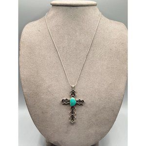 Vintage Sterling Silver & Turquoise Cross Necklace Handcrafted Native Jewelry