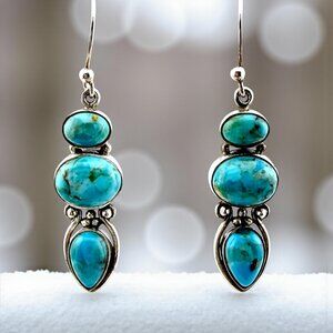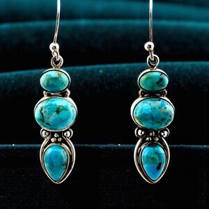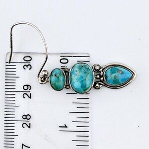 Vintage Sterling Silver Turquoise Dangle Earrings – Modernist 3-Stone Design