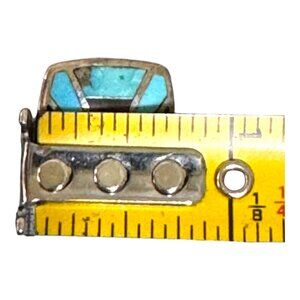 This stunning pendant features a beautiful combination of turquoise and lapis inlay set in sterling silver. Its unique design adds a touch of elegance and charm. Perfect for adding a pop of color to any ensemble, this pendant can easily be paired with any necklace chain.