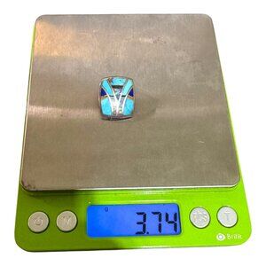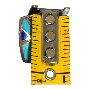 Vintage Sterling Silver Turquoise Opal Coral & Lapis Inlay Pendant Slide Zuni