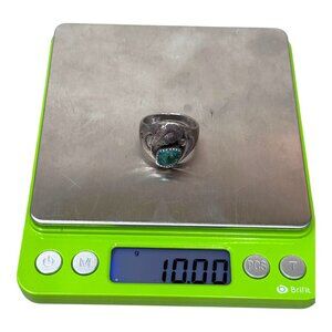 Enhance your style with this vintage sterling silver ring featuring a stunning turquoise stone. This beautiful piece adds a touch of elegance and charm to any ensemble. The intricate design and unique turquoise centerpiece make it a standout accessory for those who appreciate fine craftsmanship and timeless fashion.
