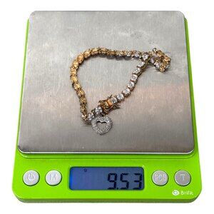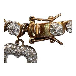 Vintage Sterling Silver Vermeil and Diamond Chip Tennis Bracelet Heart Charm 7"