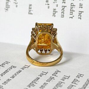 Vintage Sterling Silver Yellow Emerald-Cut Cocktail Ring Size 6