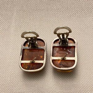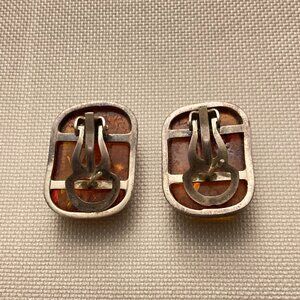 Vintage 925 sterling silver amber cabochon earrings