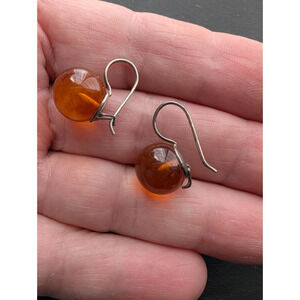 Vintage Sterling Silver and Amber Spherical Drop Earrings Pierced Ears 925