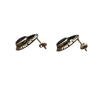Vintage Sterling Silver and Amethyst Teardrop Stud Earrings, Estate Faceted Bezel Set Oval Gemstone in Artisan Setting