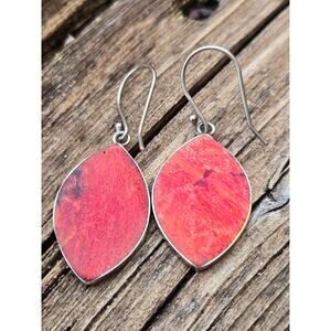 Vintage Sterling Silver and Red Coral Beach Theme/Palm Tree Ocean Earrings