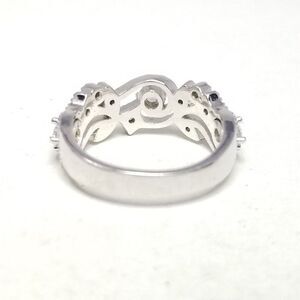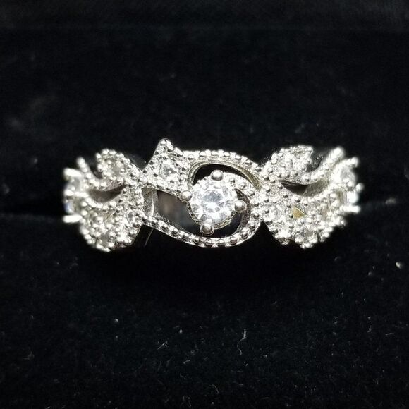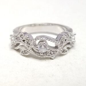 Vintage Sterling Silver and Rhinestone Inset Ring Size 7 1/2 Band, Scroll Design