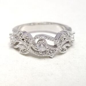 Vintage Sterling Silver and Rhinestone Inset Ring Size 7 1/2 Band, Scroll Design