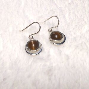 Vintage Sterling Silver and Tigers Eye Peite Pierced Earrings
