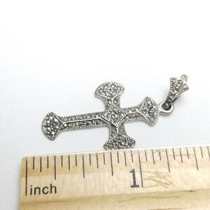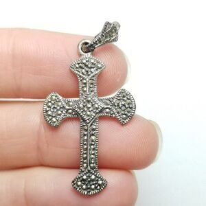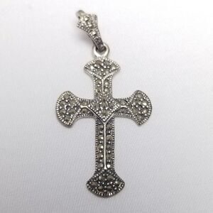 Vintage Sterling Silver and Marcasite Cross Pendant, Signed HAN 925, Estate