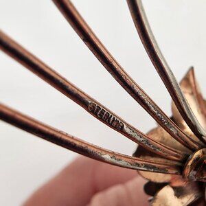Vintage Sterling Silver with Rose Gold Vermeil Plum Rhinestone Floral Brooch 40s
