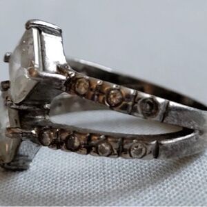Vintage sterling silver 925 ring with double diamond shaped CZ front design and CZ studded shank.