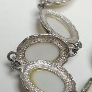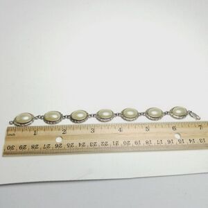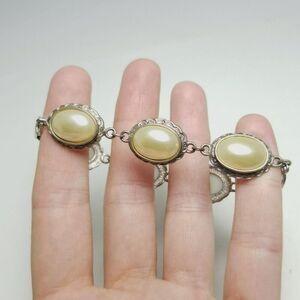 Vintage Sterling Silver and Oval Cream Cabochon Panel Chain Bracelet, Estate