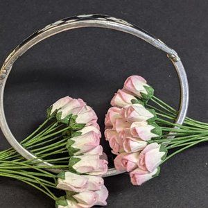 to it. It is 7.5" Around. The flowers are hearts in a clover shape and are