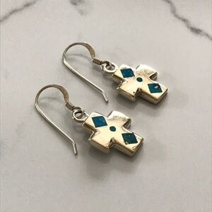 Vintage Sterling Turquoise Cross Earrings