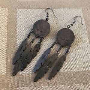 Vintage 925 sterling silver turquoise feather dangle drop boho style long statement earrings. They have a nice weight to them at 16.6 grams and measure over 3” long.