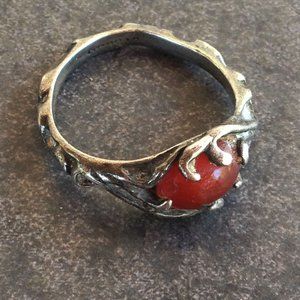Lovely Victorian Occult/Art Nouveau Ring. Amber Stone. Marked Sterling. About 4.5. Likely Pre-1920's. Heavy patina but otherwise in good condition. Could be polished out or lightly buffed or left as is.