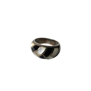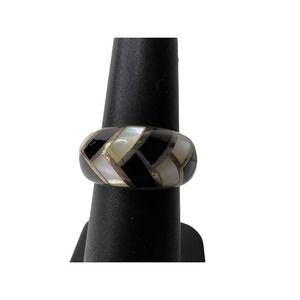 Vintage Sterling Zuni Inlay MOP & Obsidian Band , Size 5 .75 Ring