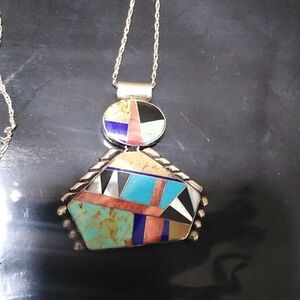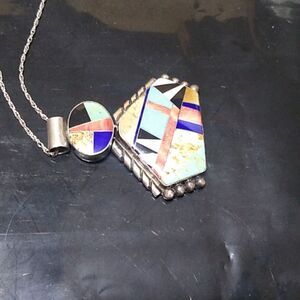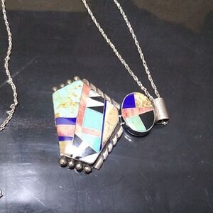 Vintage Sterling Zuni Stone Inlay/multi stone pendant Countrycore Grandma Chic