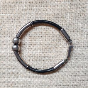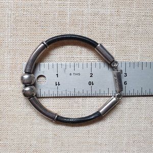 Vintage Sterling and Leather Taxco Bracelet Mexico Unisex