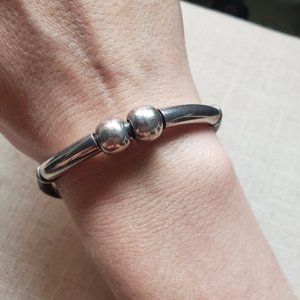 This is an amazing leather and sterling tubular Taxco bracelet. Silver ball beads and tubes on a sturdy leather cord. Unisex. Approximately 8” long. Marked 925, Mexico, and TH-4D (indicating a Taxco artisan) on the insert box clasp. Good vintage condition with clasp in working order.