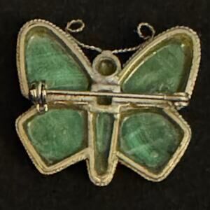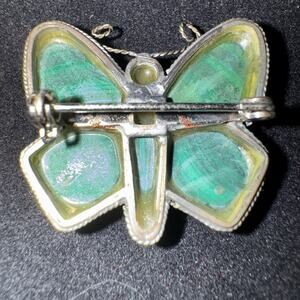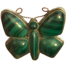 Vintage Sterling and Malachite Butterfly Brooch Pin Russia 1"