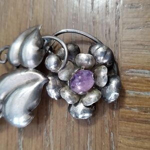 Vintage Sterling heart floral brooch with amethyst stone marked sterling AT
