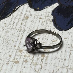 Vintage Sterling silver and pink mauve stone ring CZ October Birthstone size 6