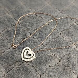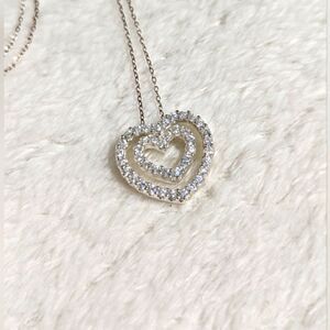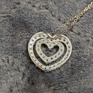 Vintage Sterling Silver & Cubic Zirconia Double Heart Necklace
