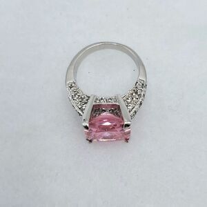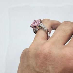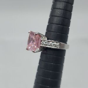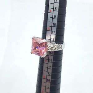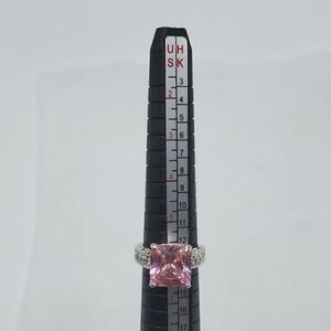 Vintage Sterling Silver Pink Sapphire CZ Princess Cut With Heart Pendant Sz 6