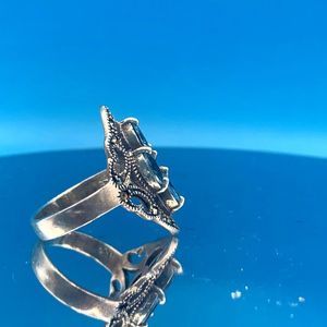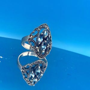 Vintage Sterling Silver Swiss Blue Topaz Open-Work Ring