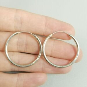 Vintage Sterling Silver Thin Hollow Tube Infinity Hoop Earrings, 1 Inch Size