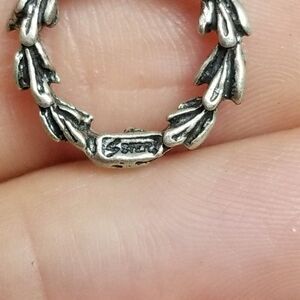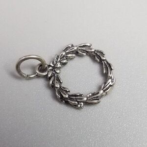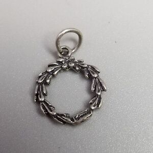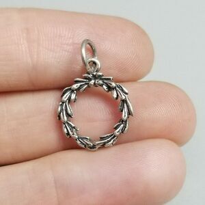 Vintage Sterling Silver Tiny Wreath Charm Pendant, Winter Holiday Christmas