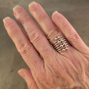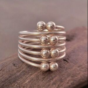 Vintage sterling silver contemporary double ball seven loop stacked ring. Fun artisan crafted piece! Tested and confirmed as sterling silver.