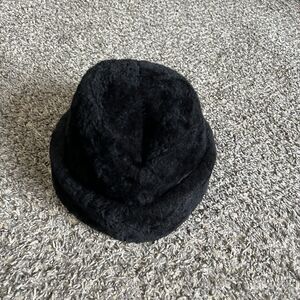 Vintage Stetson Black Genuine Mouton Fur Hat Adult Size Medium M Union Made