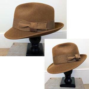 Vintage Stetson Men's Mallory Saddle Brown Caramel Wool "Furlana" Fedora Size 7