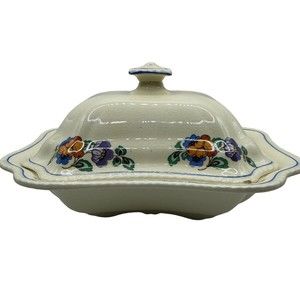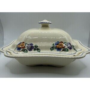 Tags: Vintage Steubenville vegetable serving bowl, ivory floral, matching lid, collectible china, elegant tableware, antique serving set, traditional craftsmanship, decorative bowl, kitchen collectible, timeless elegance, sophisticated dining accessory, fine china, luxury dining decor, ornamental design, unique vintage find, elegant serving ware, detailed floral pattern, classic table decor, high-quality porcelain, heirloom quality, exquisite craftsmanship, collector's item, vintage kitchenware