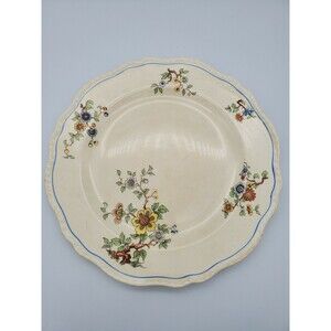 Vintage Steubenville Ivory Plate - Scalloped and beaded edge - It has a beautiful floral pattern. It measures 9" in diameter. It does have some discoloration and crazing due to age. It also has one flea bite in the glazing on the rim of the plate. See photo. Measurements are inside the photos. Item is sold as is. Please ask all questions before purchase.